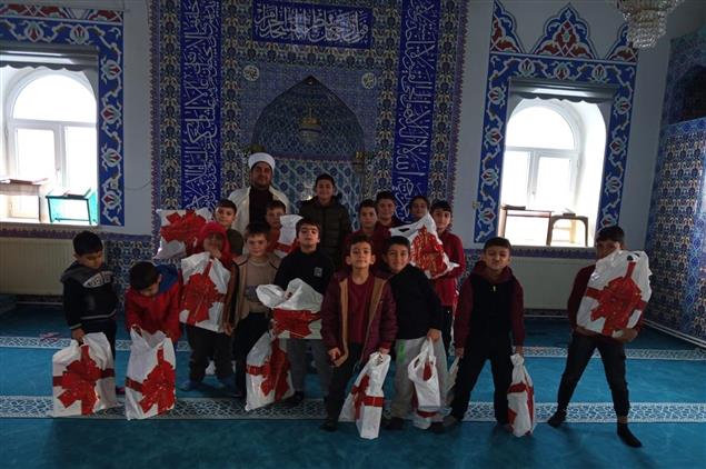 İsmini vermek istemeyen bir hayırseverimiz, camiye gelen öğrencilere kışlık ayakkabı hediye etti. Hocamız ve çocuklar, hayırseverimize bu hediyeler için teşekkür ettiler.