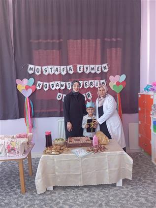 Bu anlamlı gün dolayısıyla öğrencimize taç, rozet ve Kur’an’a geçiş belgesi takdim edildi. Ayrıca Kur’an-ı Kerim ve çeşitli hediyeler verildi.